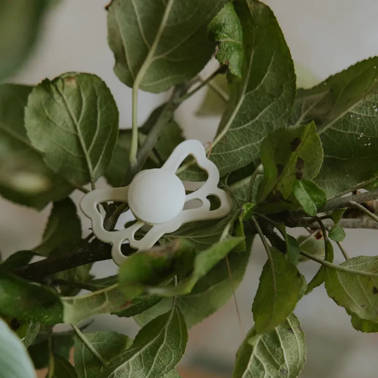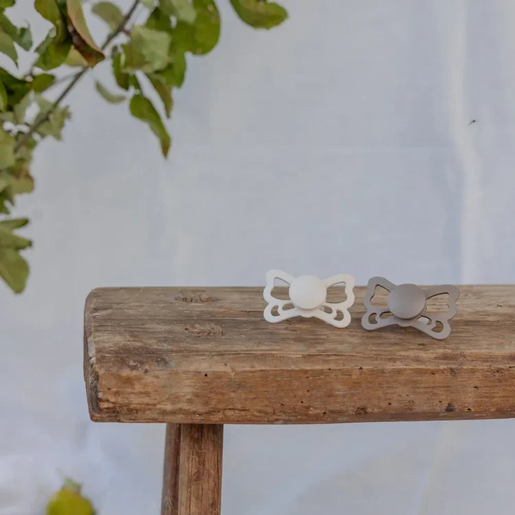 The FRIGG Butterfly pacifier is thoughtfully designed with an anatomical silicone teat that supports natural oral development. Its butterfly‑shaped shield allows airflow to reduce skin irritation, while the soft cream color offers a timeless, neutral look. Available in two sizes, this pacifier grows with your baby’s needs, ensuring comfort and reassurance at every stage.