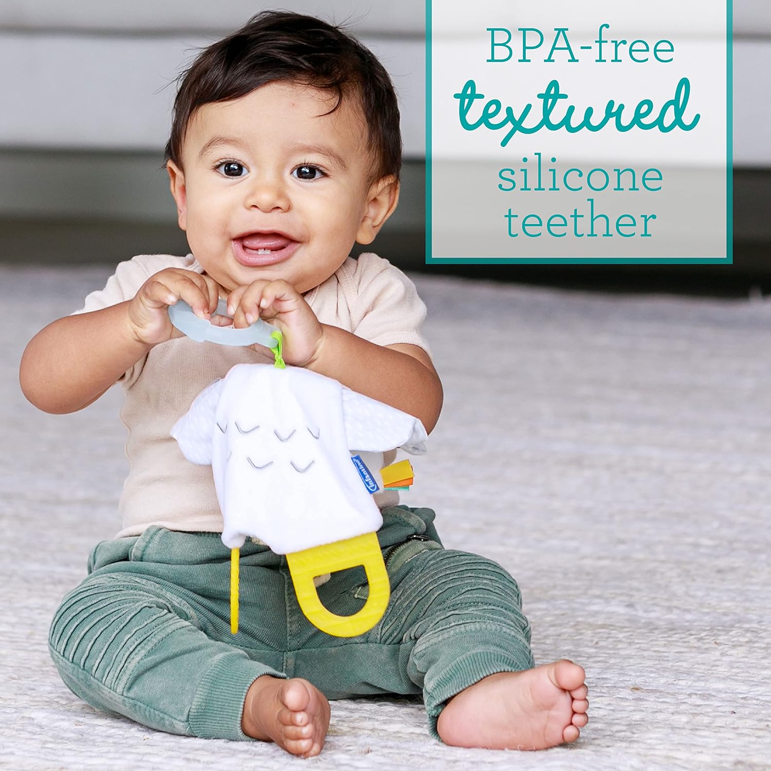 Comfort and soothe your baby with the Infantino Glow-in-The Dark Cuddly Teether. This adorable owl soft toy features three textured teethers to ease teething discomfort, fiddle flags for tactile play, and crinkle sounds to stimulate curiosity.