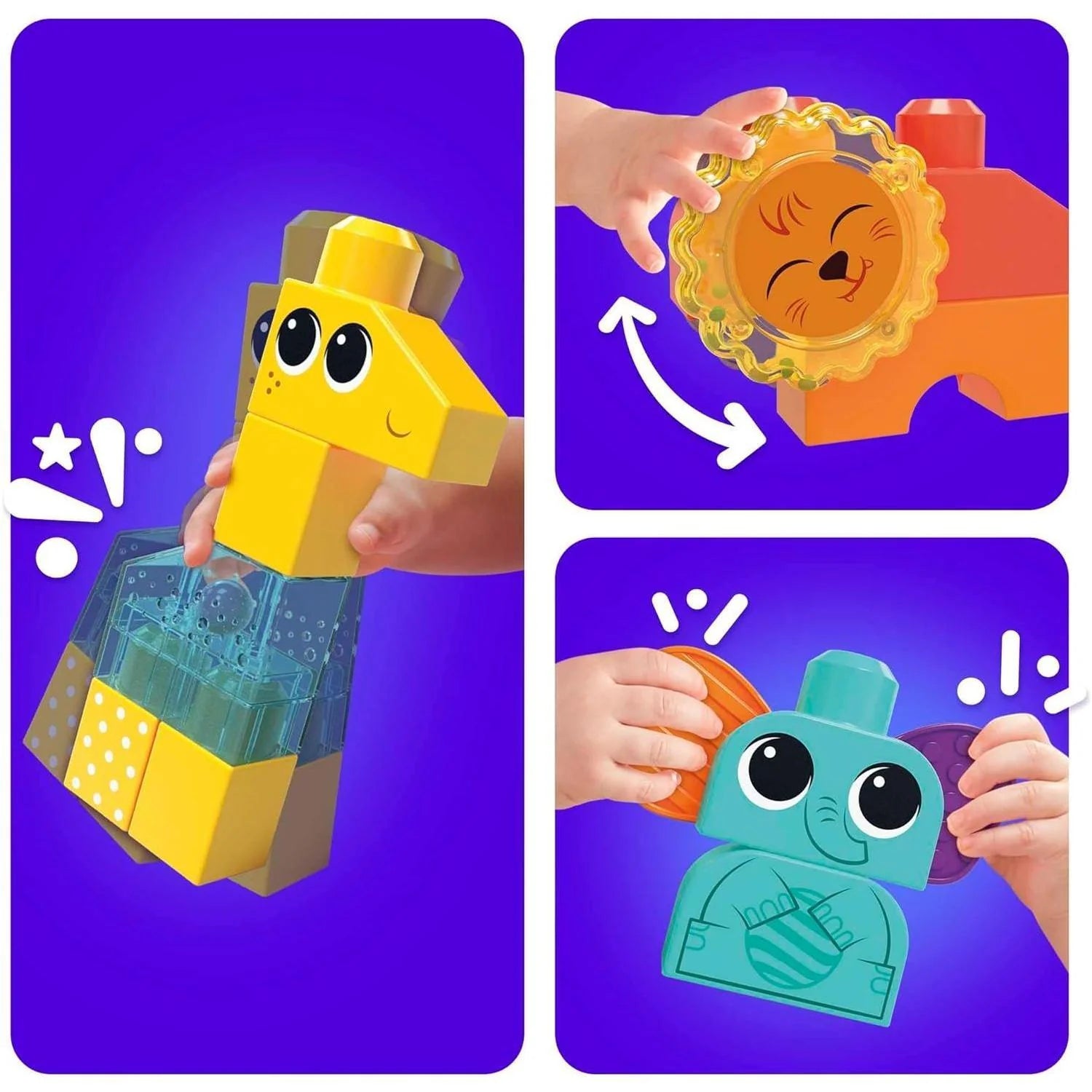The MEGA BLOKS Rock ‘n Rattle Safari Sensory Building Toys [HKN42] let toddlers build, play, and explore their senses with adorable safari animals. This 15‑piece set includes special sensory features: touch and feel the elephant’s textured ears, rattle the giraffe to hear tinkling bells, and spin the lion’s head to move colorful beads. Compatible with all MEGA BLOKS building toys, this set encourages creativity, fine motor skills, and imaginative play. Endorsed by Fisher‑Price, it’s a perfect introduction to sensory learning for toddlers ages 1–3.