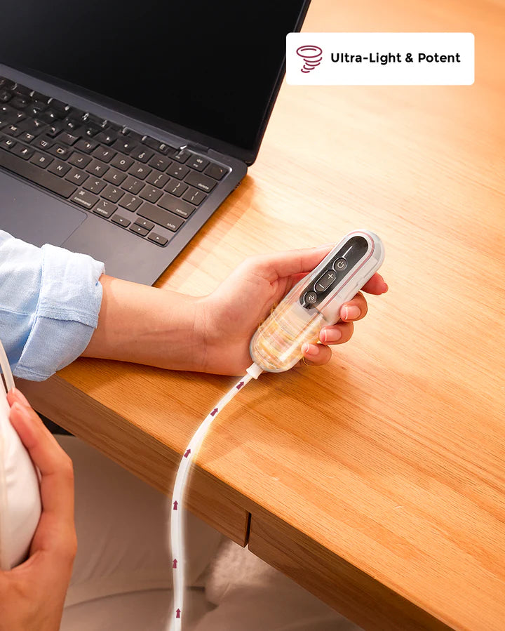 Designed with a teardrop-shaped milk collector (only 120 g / 0.26 lb each), the pump fits discreetly inside your bra and is controlled via a handheld motor. Operating at a whisper-quiet 45 dB, you can pump confidently without disturbing your baby’s sleep or drawing attention. -