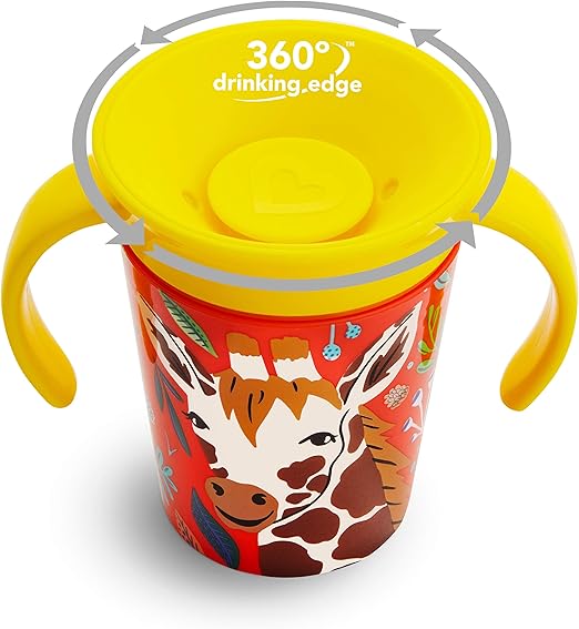 Munchkin Miracle 360° WildLove Trainer Cup| 6 oz/177 ml |Spill-Proof| BPA-Free Toddler Cup with 360° Drinking Edge - Eco-Friendly Packaging |Giraffe