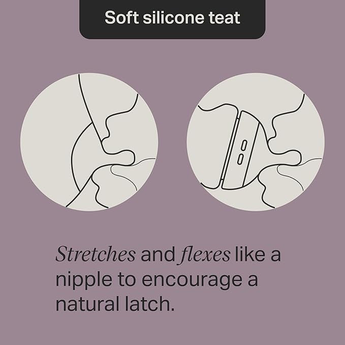 - Breast‑like silicone nipple encourages a natural latch and smooth transition between breast and bottle