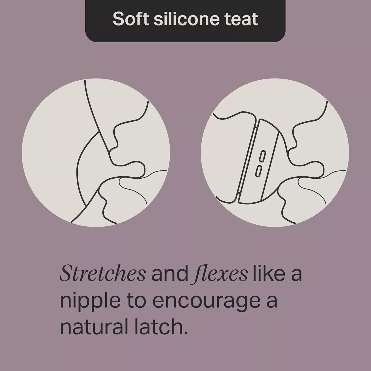 The soft silicone teat flexes and stretches like a mother’s breast encouraging a natural latch and reducing bottle rejection. Anti‑colic design helps minimize discomfort while the glass construction offers long‑lasting quality and easy sterilization.