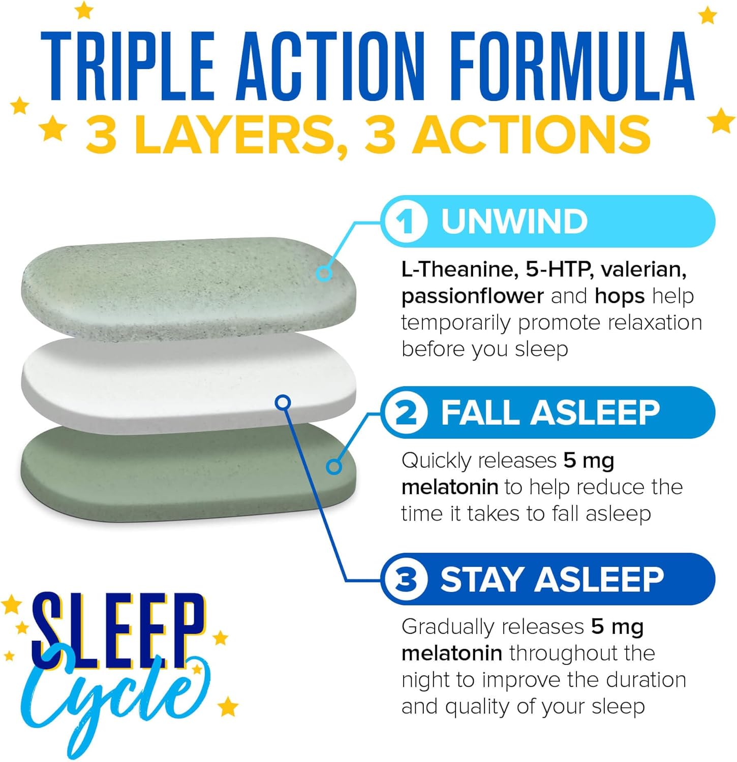 Webber Naturals Sleep Cycle Melatonin with L-Theanine, 5-HTP & Sleep Botanicals, 60 Tri-Layer Tablets, For Sleep Support, Vegan